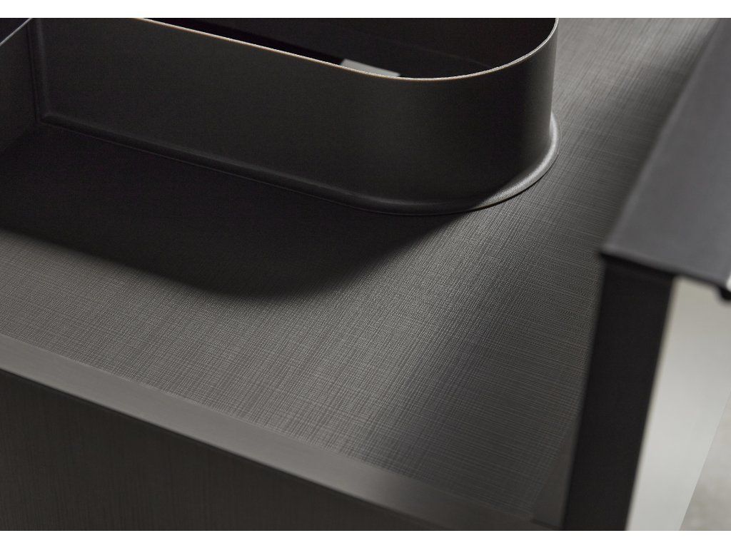 Zásuvka je osazena mechanismem soft-close, který kombinuje tlumicí jednotku a pružinový systém pro řízené dovírání. Při zavírání dochází k automatickému zpomalení pohybu a následnému tichému dotažení zásuvky do koncové polohy. Mechanismus zabraňuje nárazu, prodlužuje životnost zásuvky a zajišťuje vyšší uživatelský komfort.