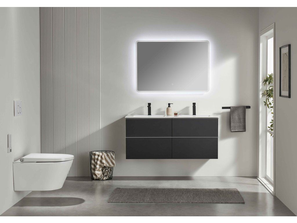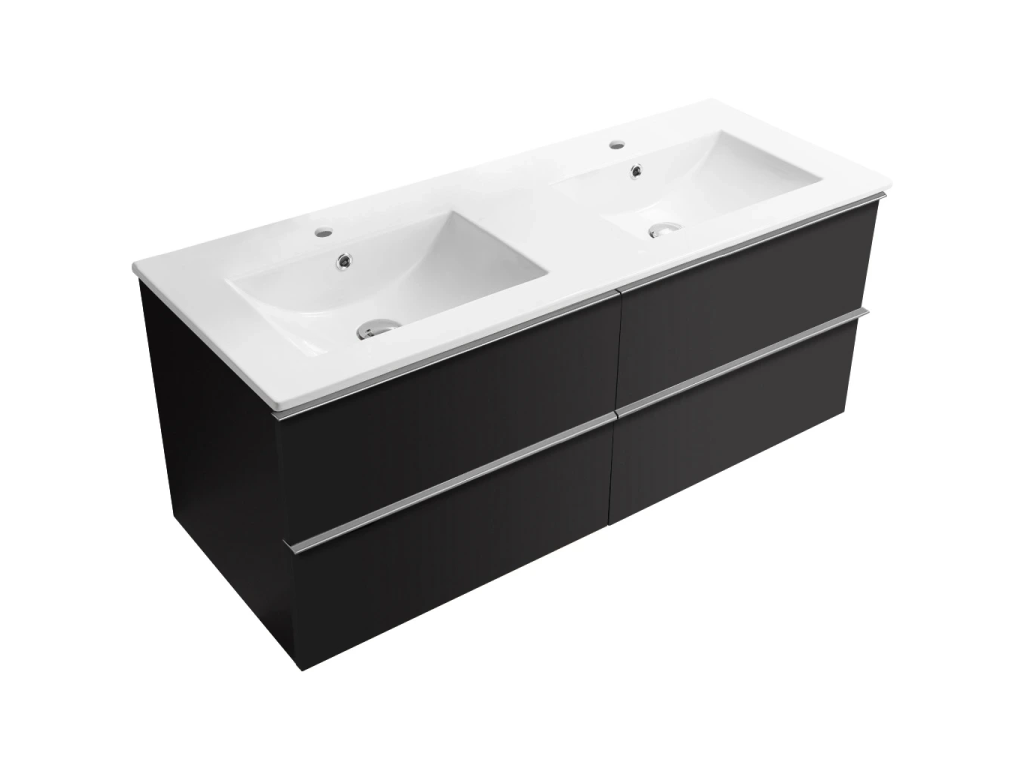 CERANO - Koupelnová skříňka Velora - černá matná, úchytka chrom + keramické umyvadlo Todo - 121x55x46,5 cm
