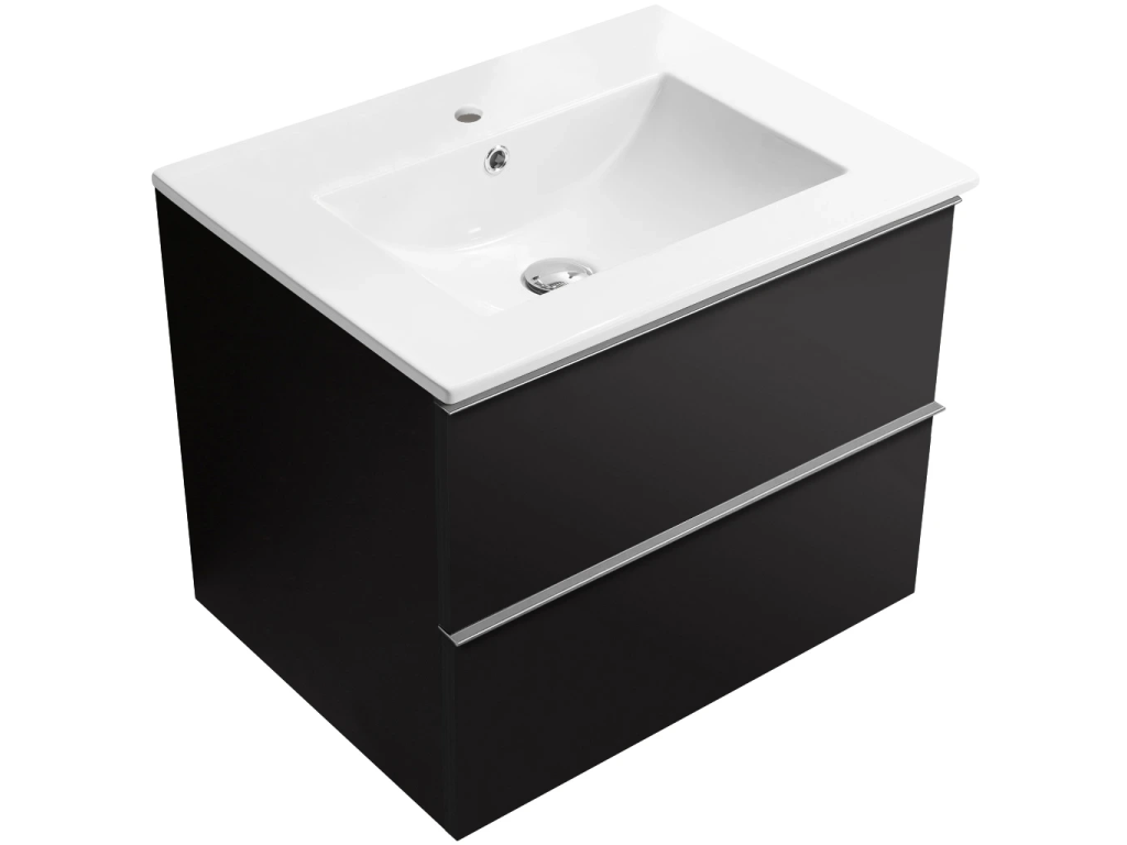 CERANO - Koupelnová skříňka Velora - černá matná, úchytka chrom + keramické umyvadlo Todo - 71x55x46,5 cm