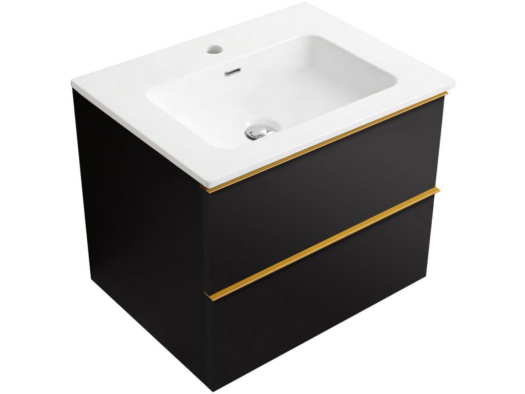 CERANO - Koupelnová skříňka Velora - černá matná, úchytka zlatá + keramické umyvadlo Novo - bílá lesklá - 71x54,5x46,5 cm