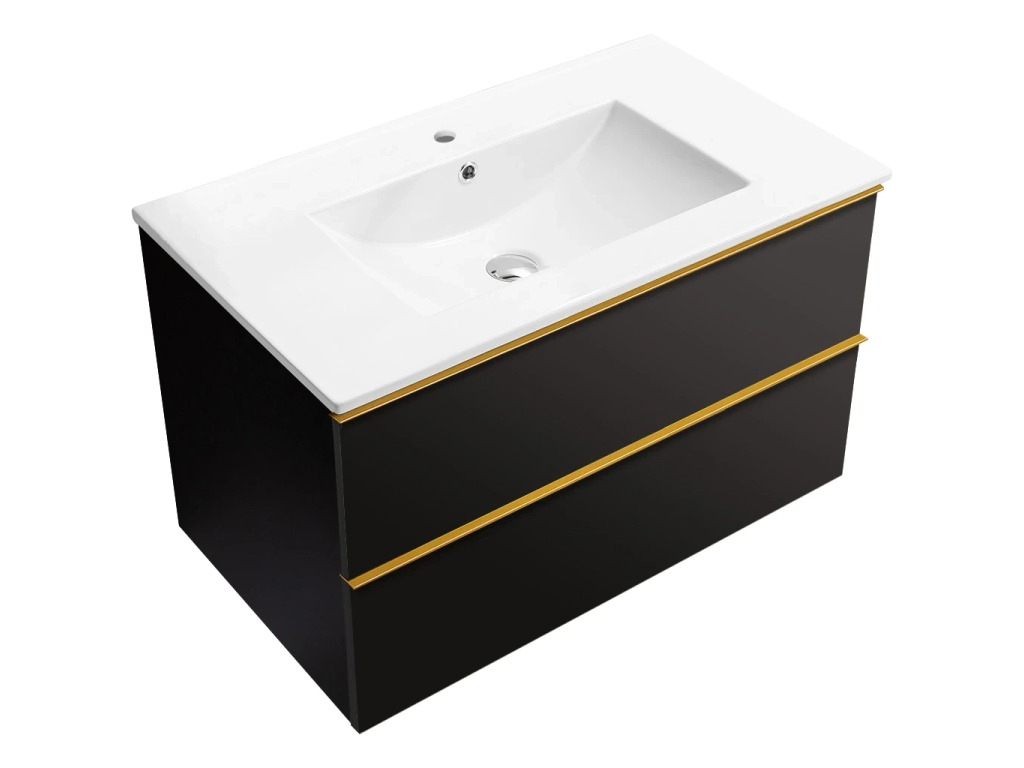 CERANO - Koupelnová skříňka Velora - černá matná, úchytka zlatá + keramické umyvadlo Todo - 101x55x46,5 cm