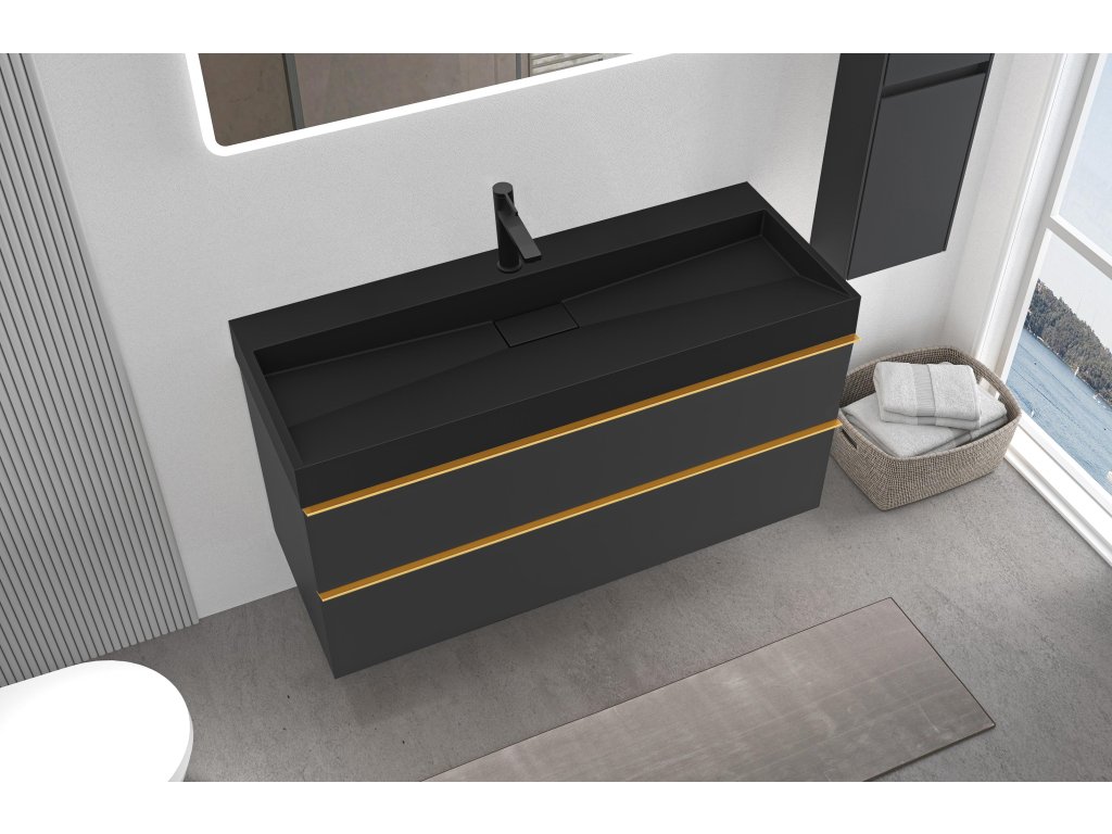 CERANO - Koupelnová skříňka Velora - černá matná - úchytka zlatá + umyvadlo s otvorem pro baterii z litého mramoru Vita - černá - 100x53x46 cm