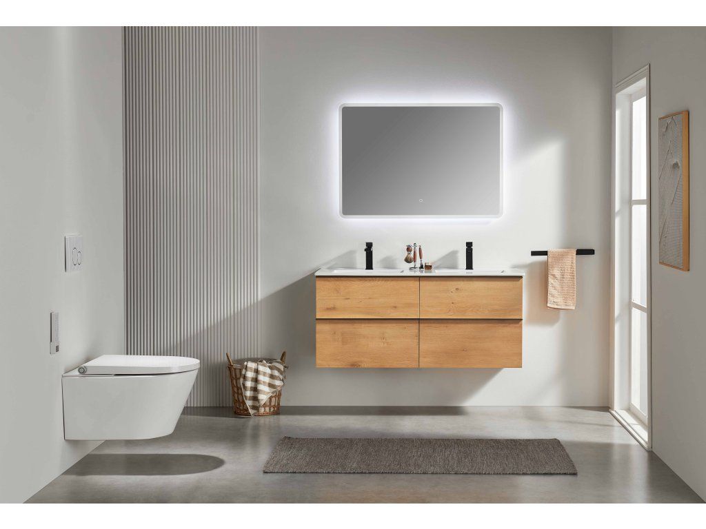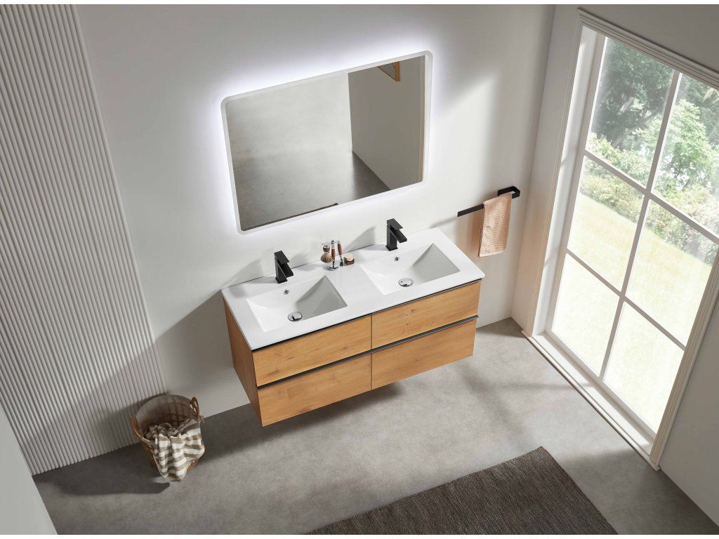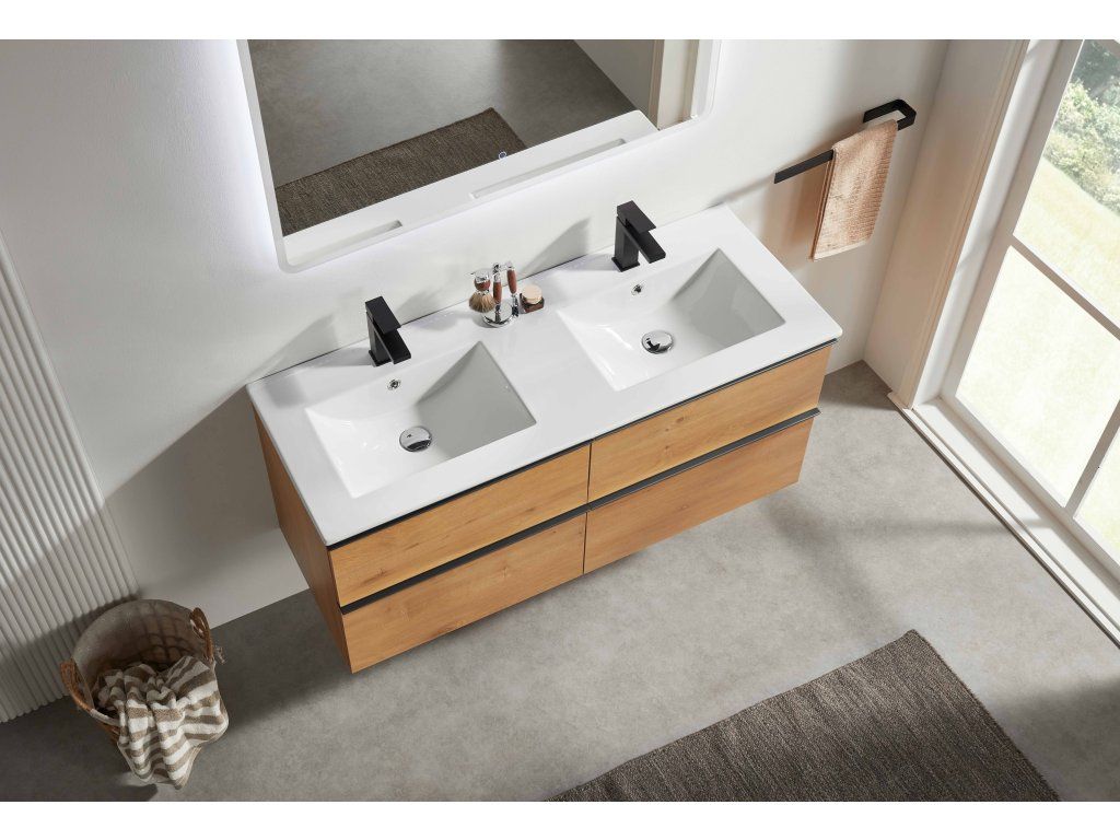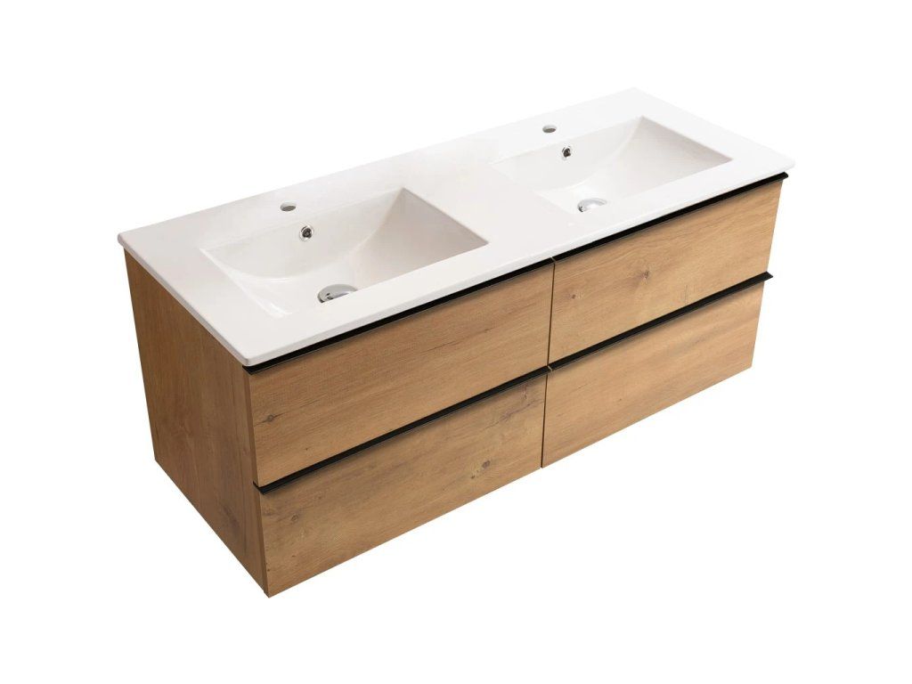 CERANO - Koupelnová skříňka Velora - dub medový, úchytka černá + keramické umyvadlo Todo - 121x55x46,5 cm