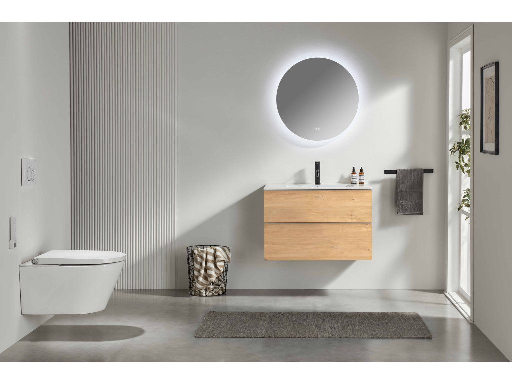 CERANO - Koupelnová skříňka Velora - dub medový, úchytka chrom + keramické umyvadlo Todo - 81x55x46,5 cm