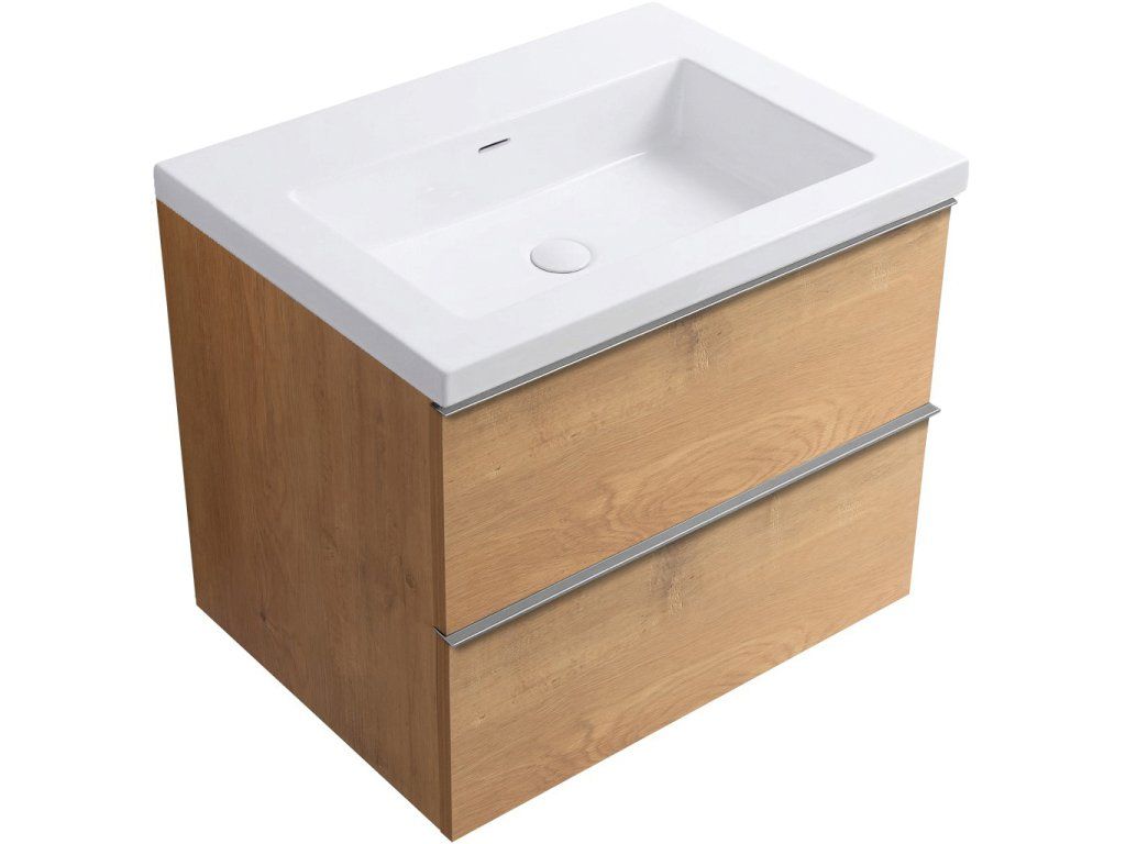 CERANO - Koupelnová skříňka Velora - dub medový, úchytka chrom + umyvadlo z lit. mramoru Ovo - bílá lesklá - 60,5x58x46,5 cm