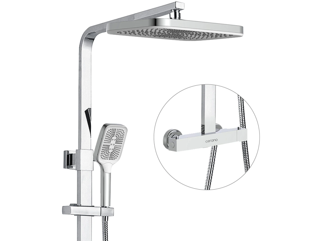 CERANO - Sprchový nástěnný sloup Octavia - termostatická sprchová baterie - chrom
