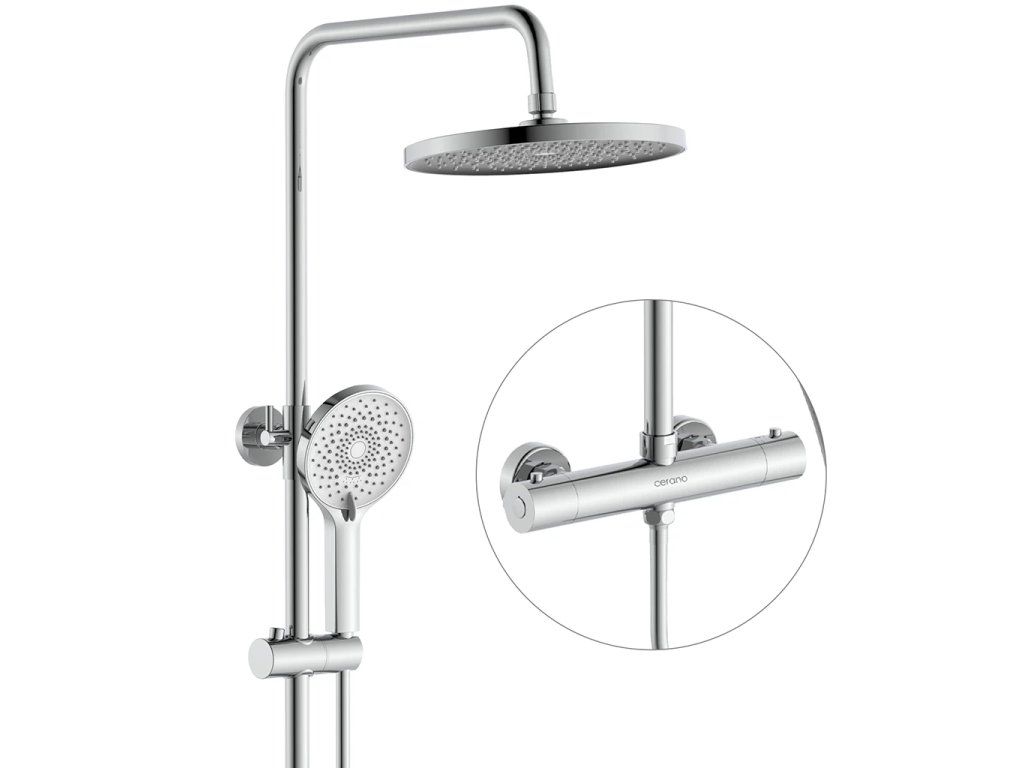 CERANO - Sprchový nástěnný sloup Selma - termostatická sprchová baterie - chrom
