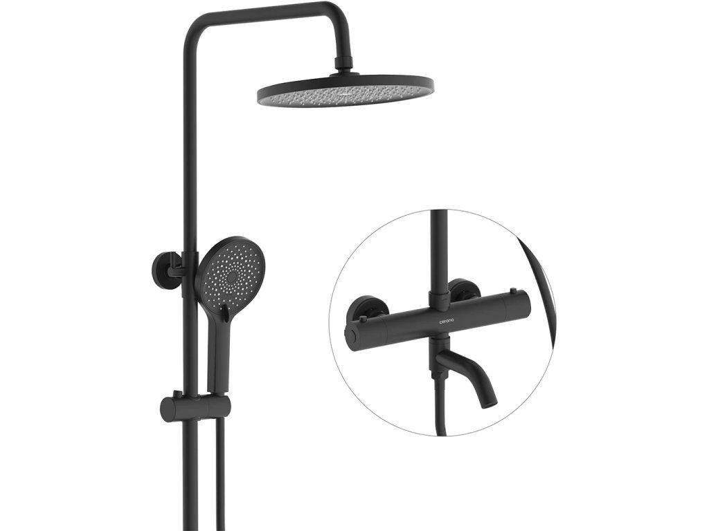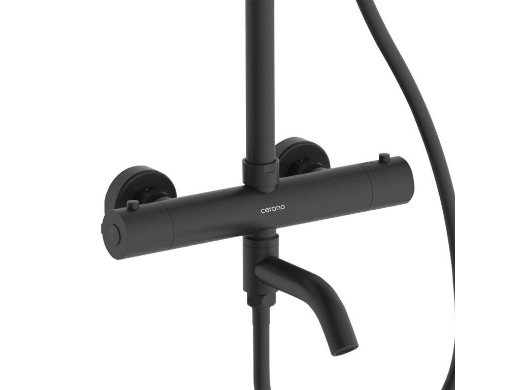 CERANO - Sprchový nástěnný sloup Selma - termostatická vanová otočná baterie - černá matná - 80-130,4 cm