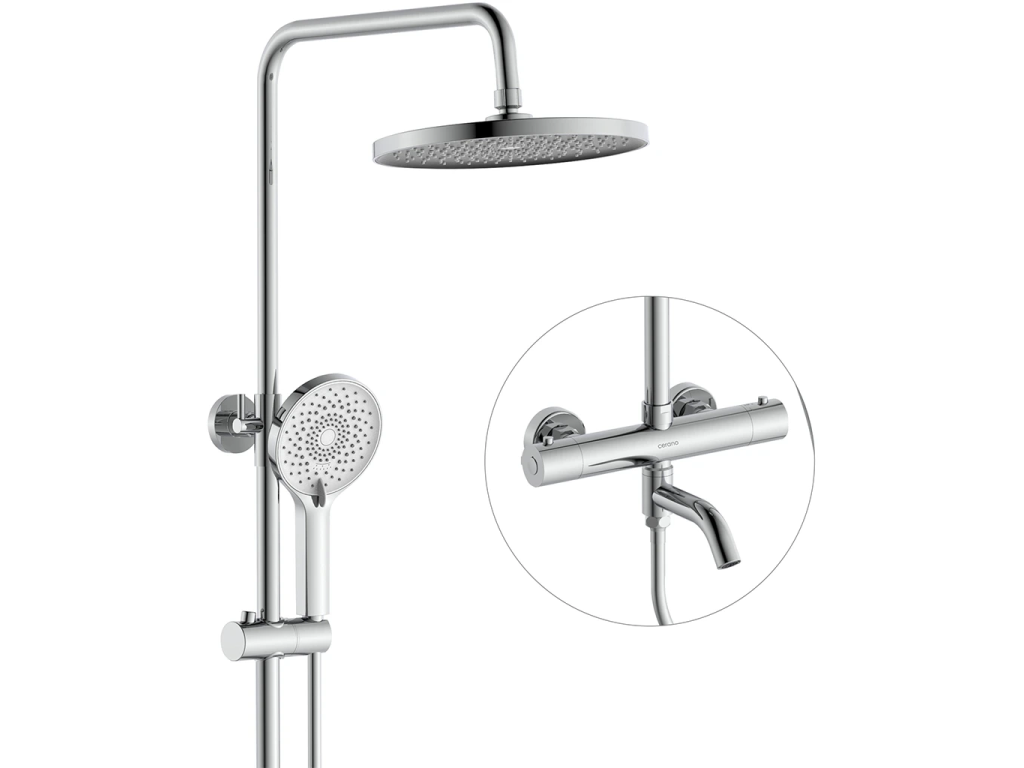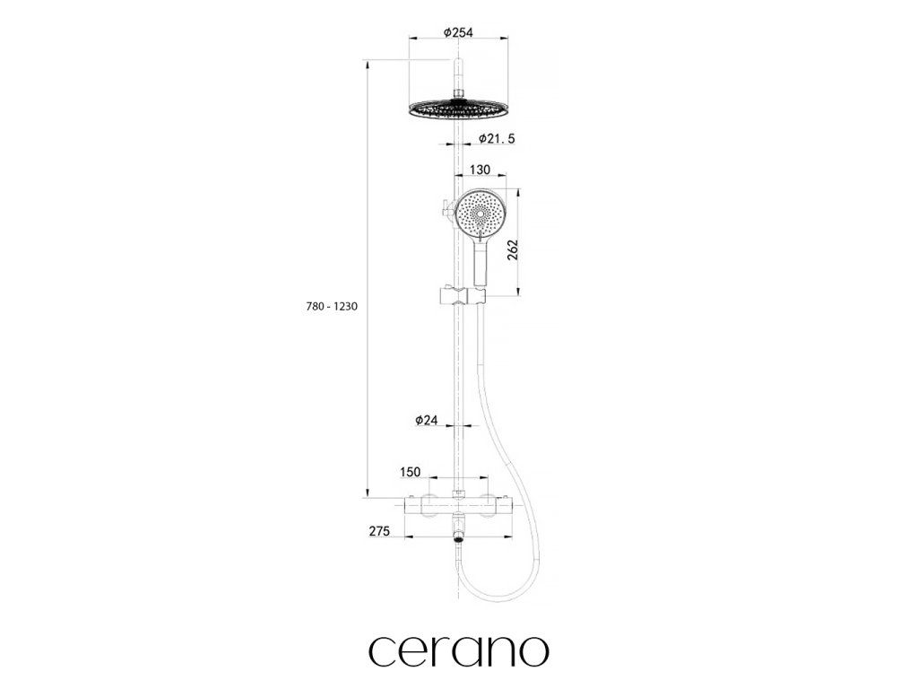 CERANO - Sprchový nástěnný sloup Selma - termostatická vanová otočná baterie - chrom - 80-130,4 cm