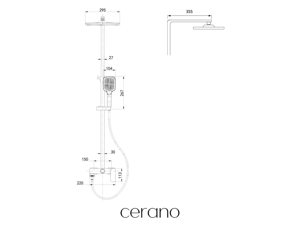 CERANO - Sprchový nástěnný sloup Zenira - vanová otočná baterie - černá matná