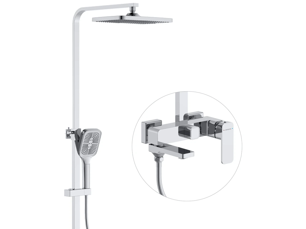 CERANO - Sprchový nástěnný sloup Zenira - vanová otočná baterie - chrom