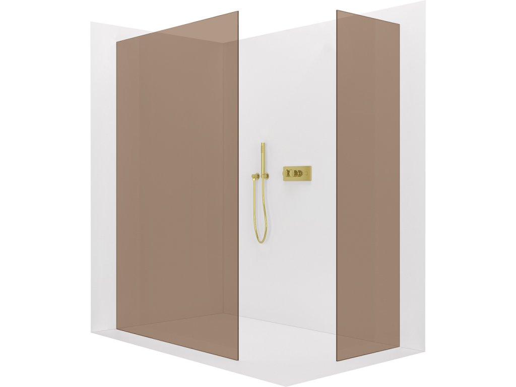 CERANO - Sprchová zástěna Walk-in Crystal T L/P - 8 mm - bezvzpěrový systém - zlatá kartáčovaná, bronzové sklo - 100x70x200 cm
