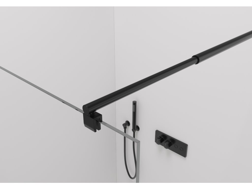 Maximální stabilitu po instalaci zajišťuje kovový profil a teleskopická vzpěra (s možností rozšíření 80 - 140 cm) v černé barvě s matnou povrchovou úpravou. Ta bezpečně udrží celý skleněný panel. Černá barva je aplikována přímo ve výrobním procesu. To zaručuje dlouhodobou životnost a odolnost proti poškrábání, mechanickému poškození a korozi. Vstup je otevřený, může být z jedné nebo i ze dvou stran.
