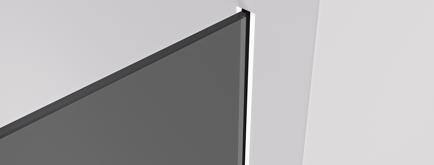 Konstrukce sprchové zástěny umožňuje pomocí profilů, které lze zapustit zcela nebo jen částečně (14 mm, do obkladů či dlažby), skryté uchycení skla bez rušivých vzpěr. Výsledkem je designově čisté a elegantní řešení, které podtrhuje moderní vzhled koupelny a zajišťuje maximální vizuální lehkost prostoru.