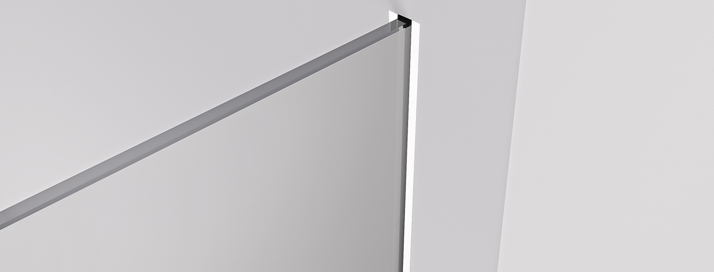 Konstrukce sprchové zástěny umožňuje pomocí profilů, které lze zapustit zcela nebo jen částečně (14 mm, do obkladů či dlažby), skryté uchycení skla bez rušivých vzpěr. Výsledkem je designově čisté a elegantní řešení, které podtrhuje moderní vzhled koupelny a zajišťuje maximální vizuální lehkost prostoru.