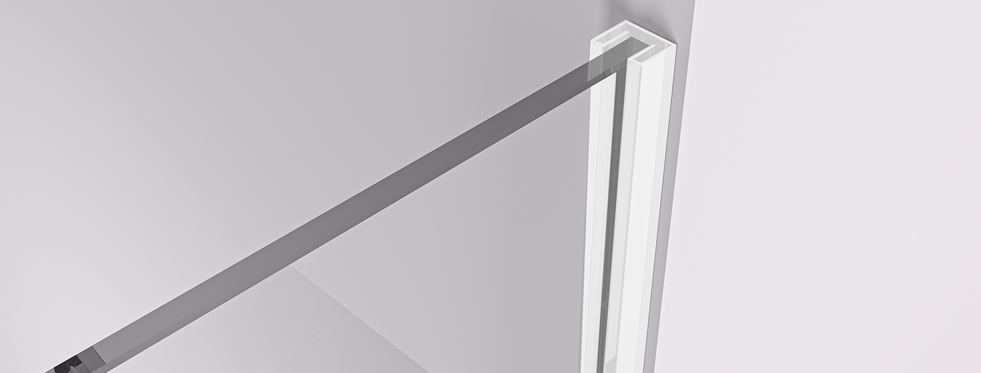 Konstrukce sprchové zástěny umožňuje pomocí profilů, které lze zapustit zcela nebo jen částečně (14 mm, do obkladů či dlažby), skryté uchycení skla bez rušivých vzpěr. Výsledkem je designově čisté a elegantní řešení, které podtrhuje moderní vzhled koupelny a zajišťuje maximální vizuální lehkost prostoru.