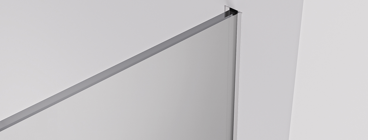 Konstrukce sprchové zástěny umožňuje pomocí profilů, které lze zapustit zcela nebo jen částečně (14 mm, do obkladů či dlažby), skryté uchycení skla bez rušivých vzpěr. Výsledkem je designově čisté a elegantní řešení, které podtrhuje moderní vzhled koupelny a zajišťuje maximální vizuální lehkost prostoru.