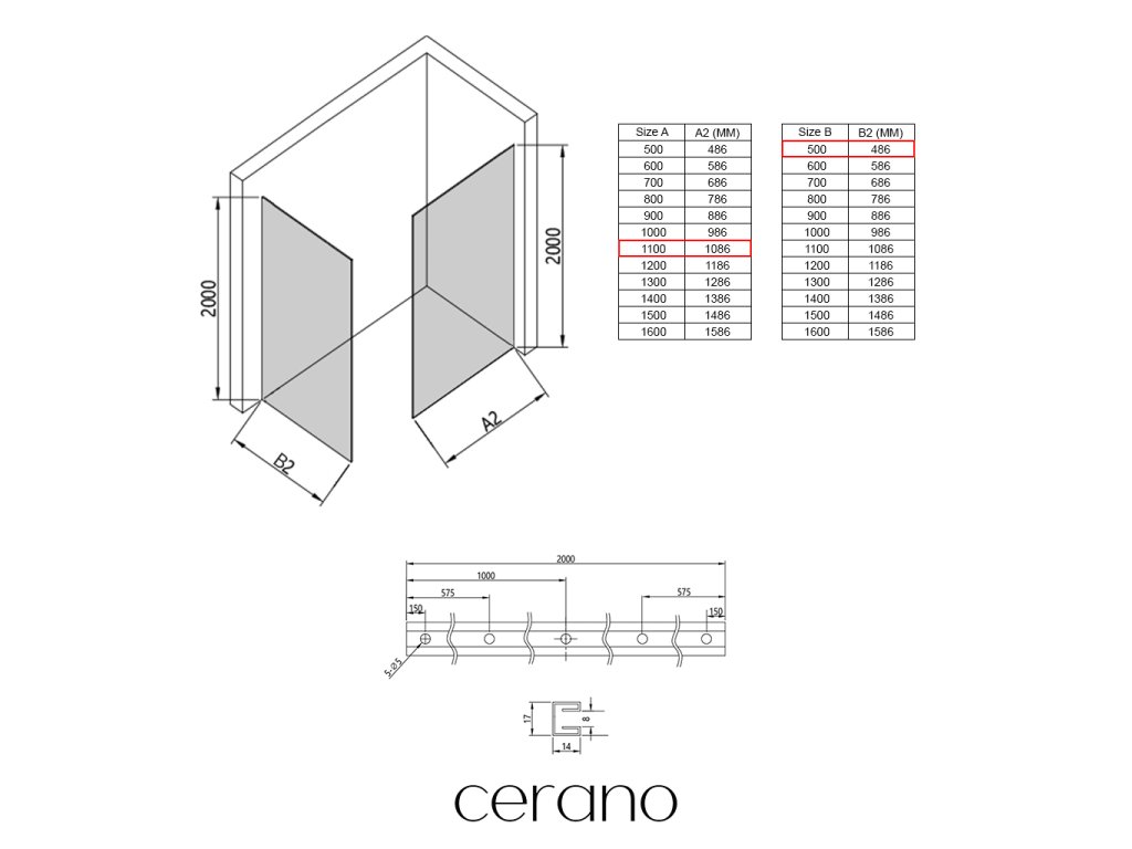 V rámci této série nabízíme širokou škálu rozměrů, abychom uspokojili různé potřeby našich zákazníků. Všechny sprchové kouty, dveře a zástěny značky Cerano jsou plně kompatibilní se sprchovými vaničkami Cerano ve stejných rozměrech, což zajišťuje bezproblémovou instalaci a dokonalé sladění. Sprchový kout lze navíc instalovat flexibilně – buď na odpovídající sprchovou vaničku, nebo přímo na podlahu podle vašich preferencí a možností koupelny.