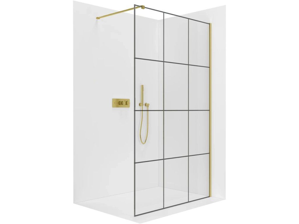 CERANO - Sprchová zástěna Walk-in Onyx Cube L/P - 8 mm - hranatá vzpěra - zlatá, industriální sklo - 110x200 cm