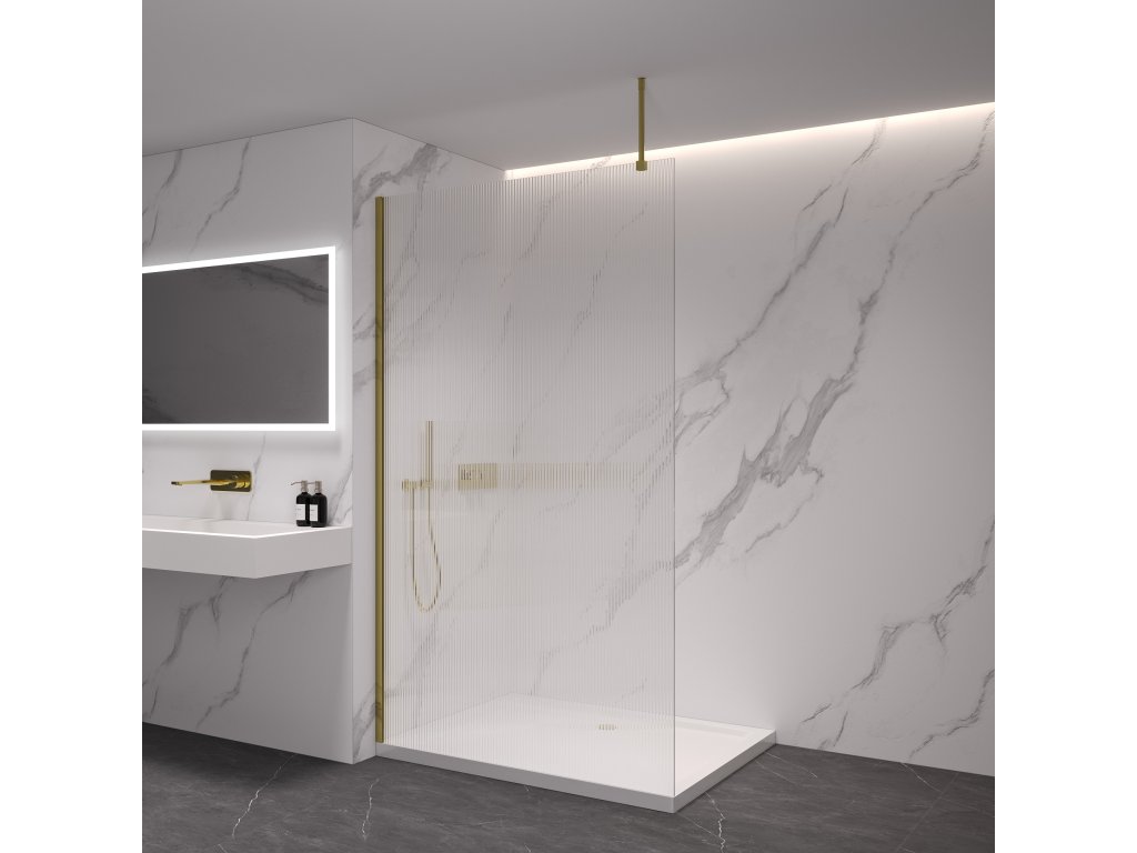 CERANO - Sprchová zástěna Walk-in Onyx Top Round L/P - 8 mm - kulatá vzpěra - zlatá kartáčovaná, rýhované sklo - 110x200 cm