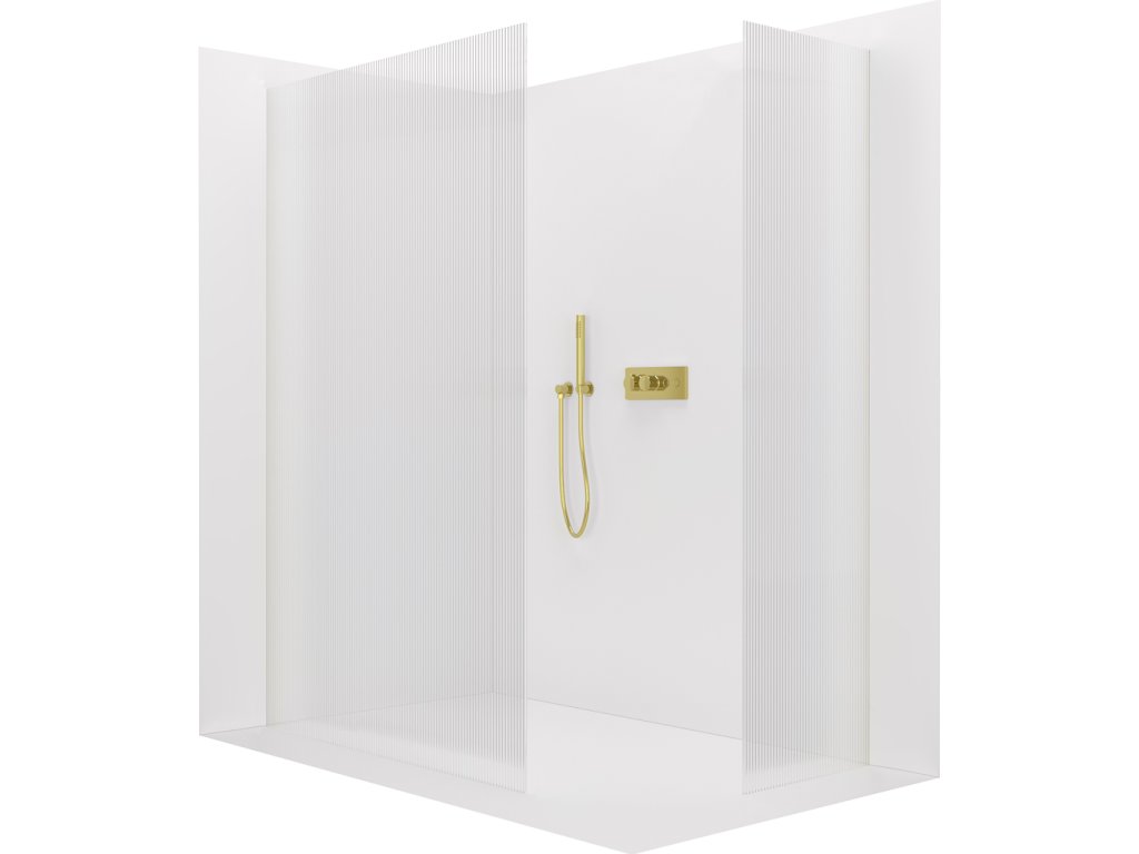 CERANO - Sprchová zástěna Walk-in Crystal T L/P - 8 mm - bezvzpěrový systém - zlatá kartáčovaná, rýhované sklo - 120x80x200 cm