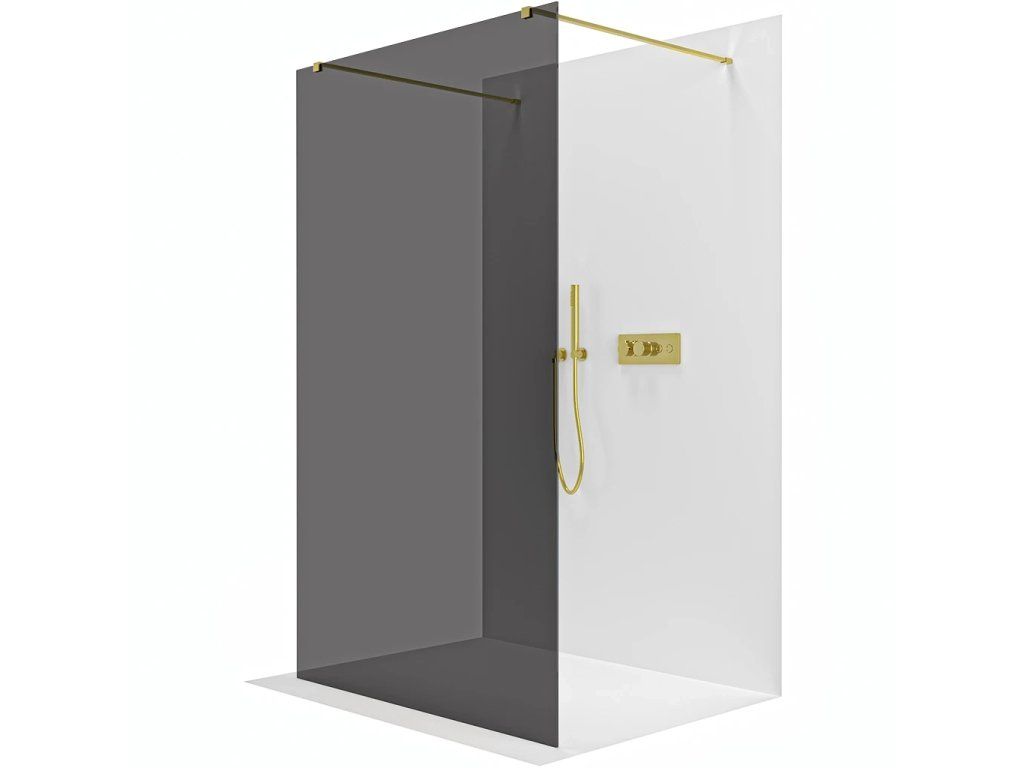 CERANO - Sprchová zástěna Walk-in Onyx Duo L/P - 8 mm - hranatá vzpěra - zlatá, grafitové sklo - 120x200 cm