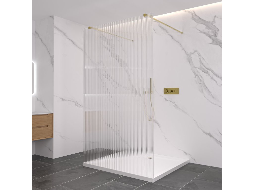 CERANO - Sprchová zástěna Walk-in Onyx Duo L/P - 8 mm - hranatá vzpěra - zlatá kartáčovaná, rýhované sklo - 120x200 cm