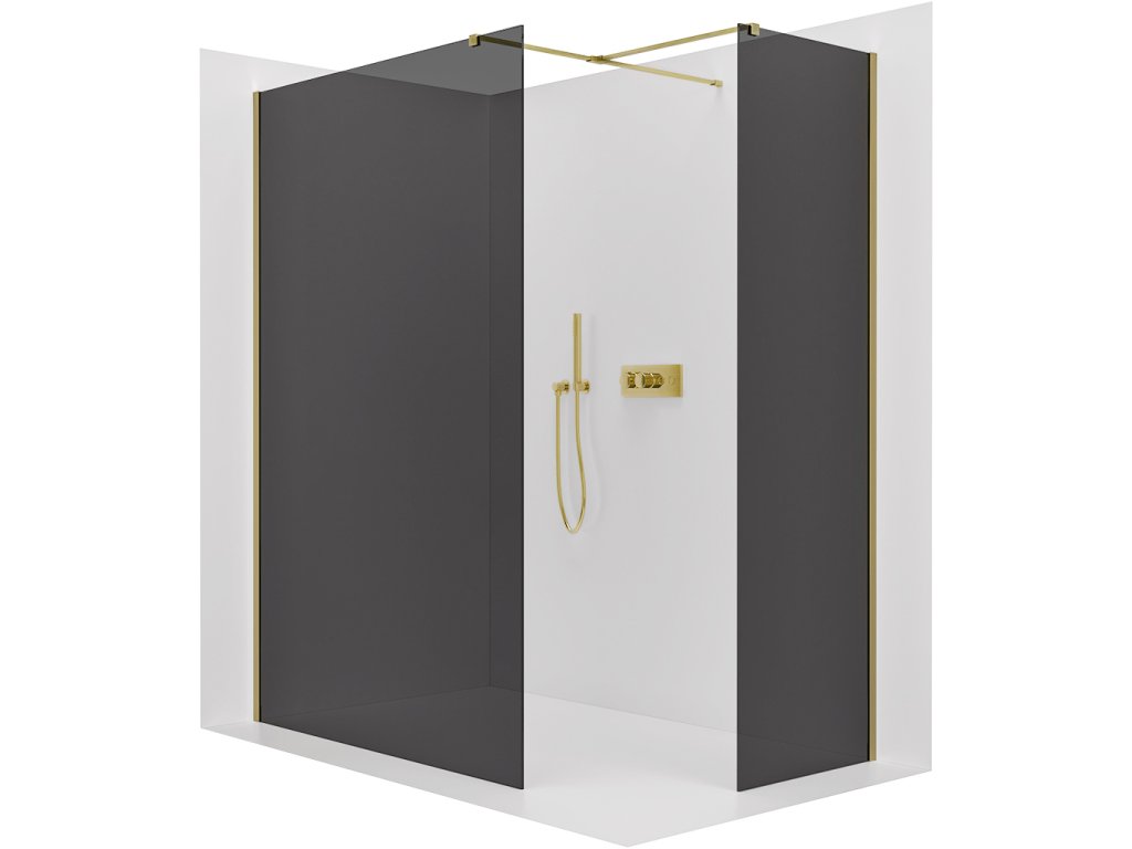 CERANO - Sprchová zástěna Walk-in Onyx T L/P - 8 mm - hranatá vzpěra - zlatá kartáčovaná, grafitové sklo - 120x100x200 cm