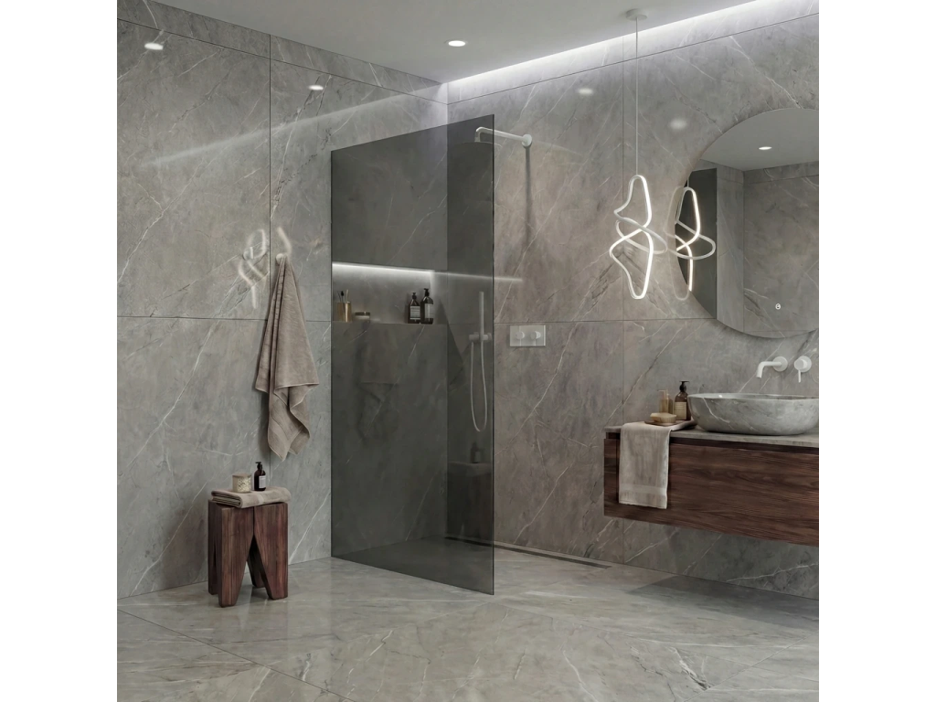 Díky promyšlené konstrukci je sklo uchyceno skrytě do profilů, které lze zapustit zcela nebo částečně ( až 14 mm do obkladů či dlažby). Bez rušivých vzpěr tak vzniká čisté, elegantní řešení, které podtrhne moderní vzhled koupelny a dodá prostoru maximální vizuální lehkost.