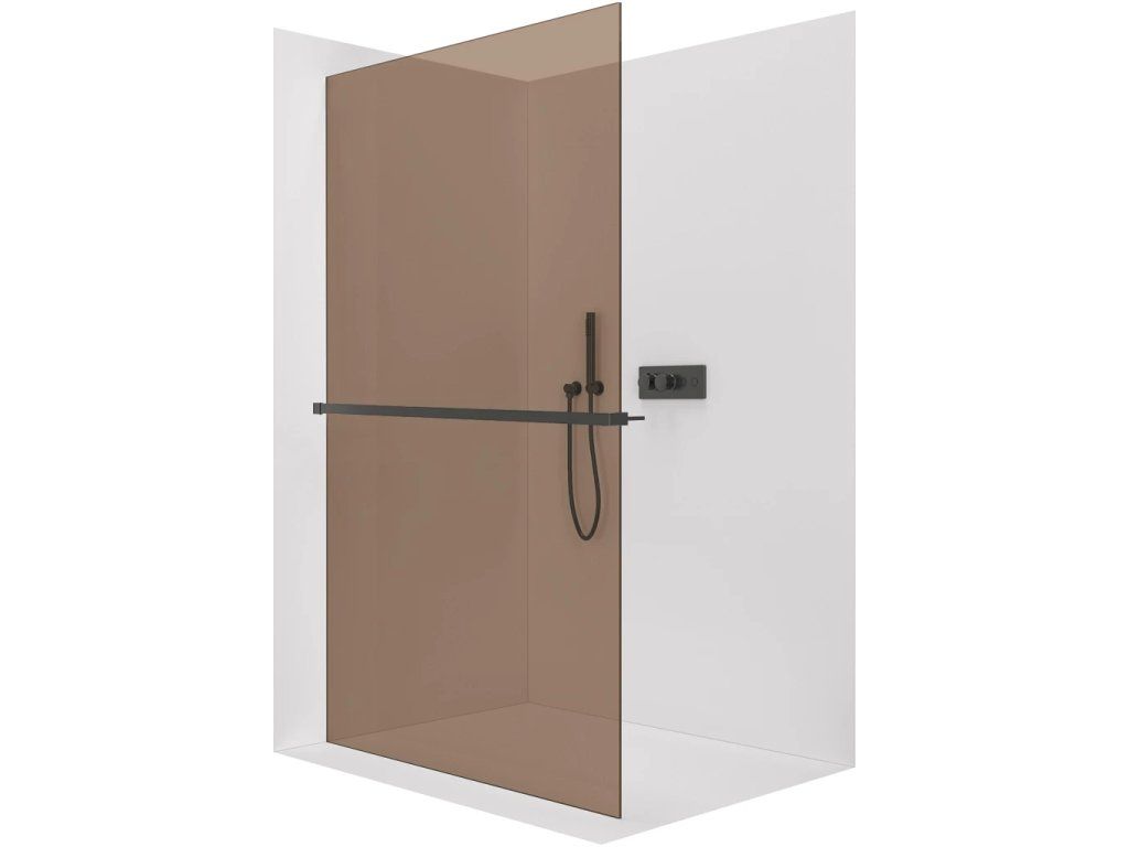 CERANO - Sprchová zástěna Walk-in Crystal L/P - 8 mm + polička/držák na ručníky - bezvzpěrový systém - černá matná, bronzové sklo - 130x200 cm