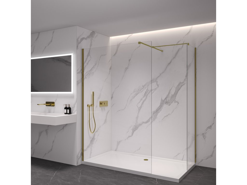CERANO - Sprchová zástěna Walk-in Onyx T L/P - 8 mm - hranatá vzpěra - zlatá kartáčovaná, transparentní sklo - 130x80x200 cm