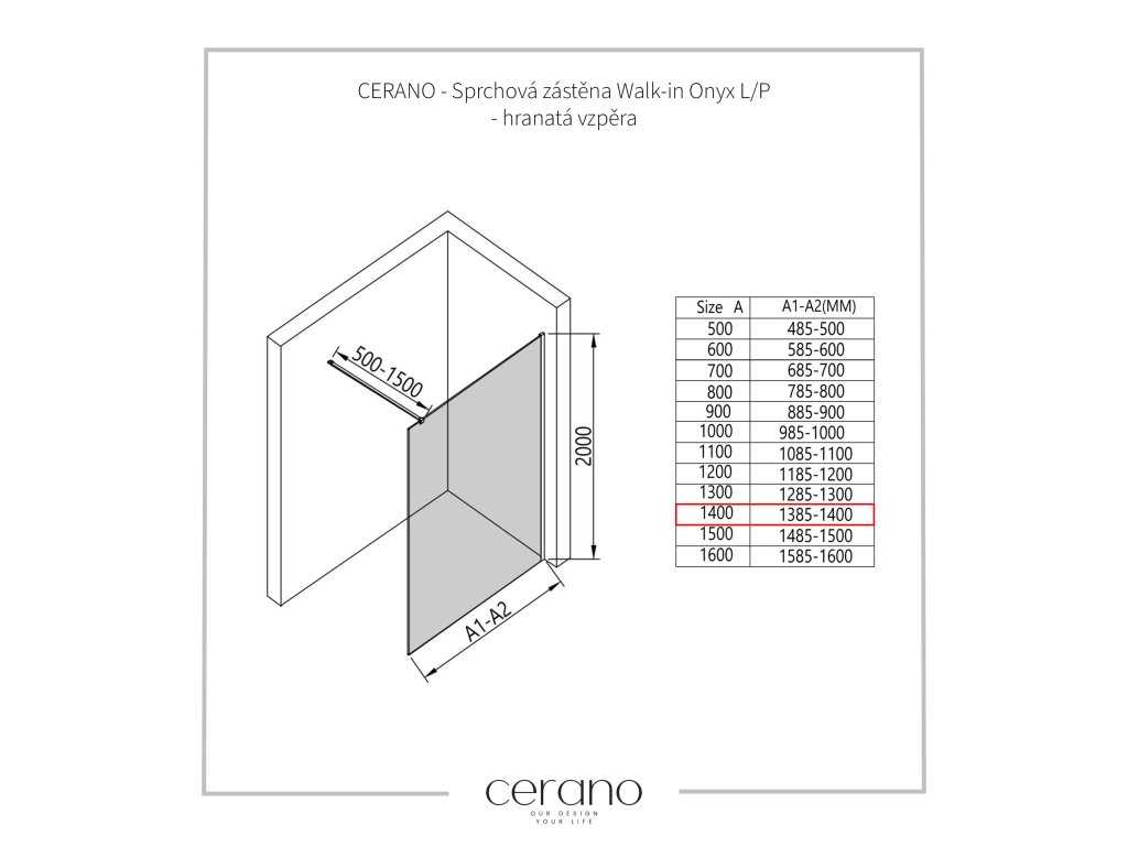 V rámci této série nabízíme širokou škálu rozměrů, abychom uspokojili různé potřeby našich zákazníků. Všechny sprchové kouty, dveře a zástěny značky Cerano jsou plně kompatibilní se sprchovými vaničkami Cerano ve stejných rozměrech, což zajišťuje bezproblémovou instalaci a dokonalé sladění. Sprchový kout lze navíc instalovat flexibilně – buď na odpovídající sprchovou vaničku, nebo přímo na podlahu podle vašich preferencí a možností koupelny.