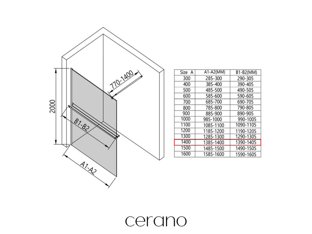 V rámci této série nabízíme širokou škálu rozměrů, abychom uspokojili různé potřeby našich zákazníků. Všechny sprchové kouty, dveře a zástěny značky Cerano jsou plně kompatibilní se sprchovými vaničkami Cerano ve stejných rozměrech, což zajišťuje bezproblémovou instalaci a dokonalé sladění. Sprchový kout lze navíc instalovat flexibilně – buď na odpovídající sprchovou vaničku, nebo přímo na podlahu podle vašich preferencí a možností koupelny.