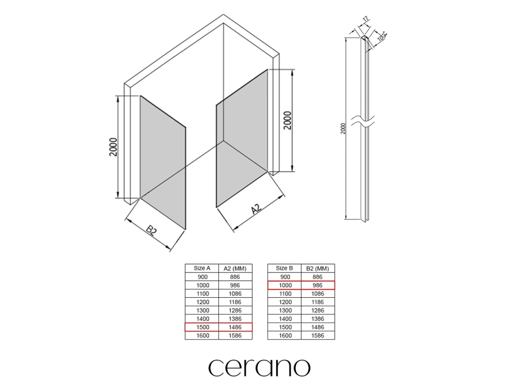 V rámci této série nabízíme širokou škálu rozměrů, abychom uspokojili různé potřeby našich zákazníků. Všechny sprchové kouty, dveře a zástěny značky Cerano jsou plně kompatibilní se sprchovými vaničkami Cerano ve stejných rozměrech, což zajišťuje bezproblémovou instalaci a dokonalé sladění. Sprchový kout lze navíc instalovat flexibilně – buď na odpovídající sprchovou vaničku, nebo přímo na podlahu podle vašich preferencí a možností koupelny.
