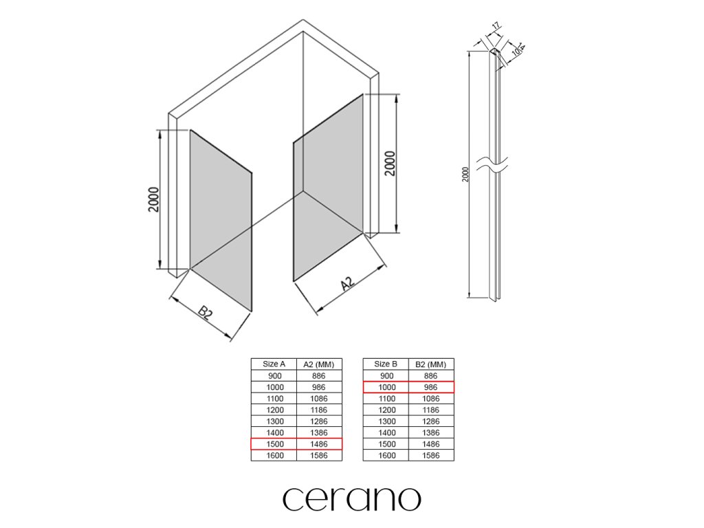 V rámci této série nabízíme širokou škálu rozměrů, abychom uspokojili různé potřeby našich zákazníků. Všechny sprchové kouty, dveře a zástěny značky Cerano jsou plně kompatibilní se sprchovými vaničkami Cerano ve stejných rozměrech, což zajišťuje bezproblémovou instalaci a dokonalé sladění. Sprchový kout lze navíc instalovat flexibilně – buď na odpovídající sprchovou vaničku, nebo přímo na podlahu podle vašich preferencí a možností koupelny.