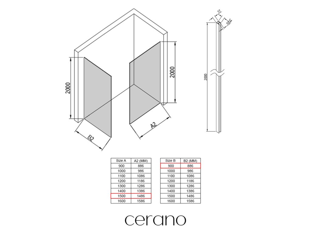 V rámci této série nabízíme širokou škálu rozměrů, abychom uspokojili různé potřeby našich zákazníků. Všechny sprchové kouty, dveře a zástěny značky Cerano jsou plně kompatibilní se sprchovými vaničkami Cerano ve stejných rozměrech, což zajišťuje bezproblémovou instalaci a dokonalé sladění. Sprchový kout lze navíc instalovat flexibilně – buď na odpovídající sprchovou vaničku, nebo přímo na podlahu podle vašich preferencí a možností koupelny.