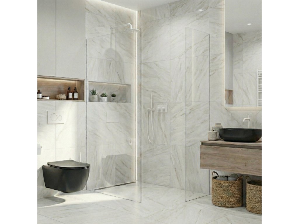 Díky promyšlené konstrukci je sklo uchyceno skrytě do profilů, které lze zapustit zcela nebo částečně ( až 14 mm do obkladů či dlažby). Bez rušivých vzpěr tak vzniká čisté, elegantní řešení, které podtrhne moderní vzhled koupelny a dodá prostoru maximální vizuální lehkost.
