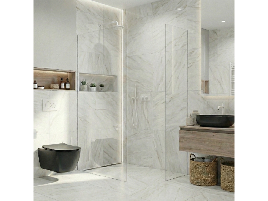 Díky promyšlené konstrukci je sklo uchyceno skrytě do profilů, které lze zapustit zcela nebo částečně ( až 14 mm do obkladů či dlažby). Bez rušivých vzpěr tak vzniká čisté, elegantní řešení, které podtrhne moderní vzhled koupelny a dodá prostoru maximální vizuální lehkost.