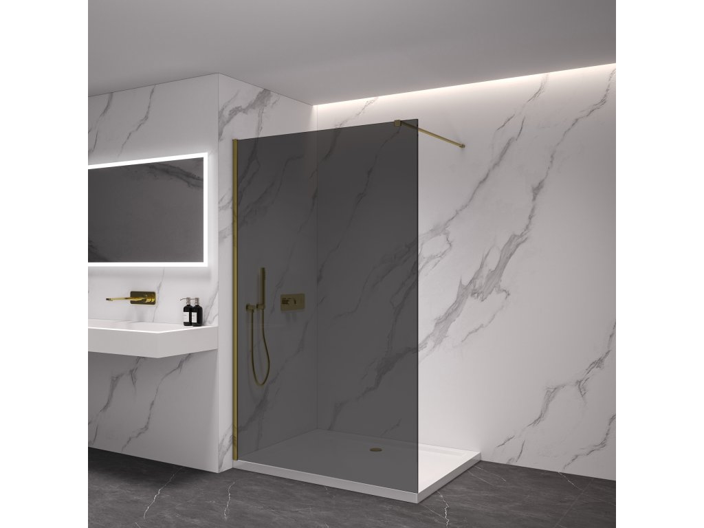 CERANO - Sprchová zástěna Walk-in Onyx Cube L/P - 8 mm - hranatá vzpěra - zlatá kartáčovaná, grafitové sklo - 150x200 cm