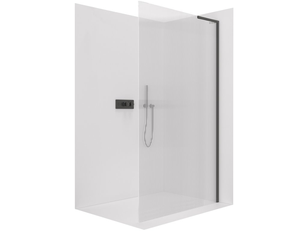 CERANO - Sprchová zástěna Walk-in Onyx L-pravá vzpěra - 8 mm - černá matná, rýhované sklo - 150x200 cm
