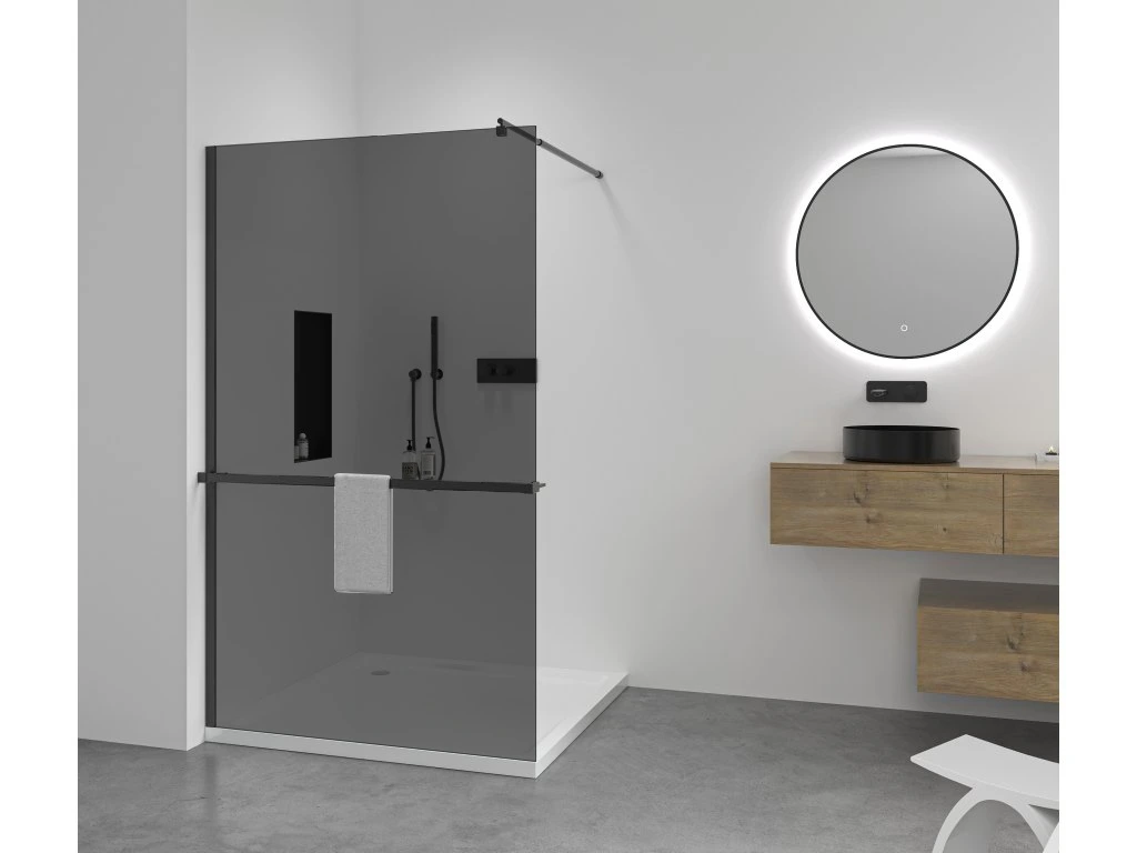 Sprchová zástěna je vyrobena z tvrzeného skla o tloušťce 10 mm, což zajišťuje nejen bezpečnost, ale také dlouhou životnost. Tvrzené sklo je méně náchylné k poškrábání a prasknutí, takže zůstane funkční po mnoho let. Skleněný panel v grafitové barvě vytváří efekt kouřového skla, což maximálně zvyšuje pocit soukromí při sprchování. Sklo disponuje povrchovou úpravou Easy Clean, která minimalizuje usazování vodního kamene a výrazně tak usnadňuje čištění. Před instalací doporučujeme aklimatizovat v domácích podmínkách po dobu 48 hodin. Především v zimních měsících.