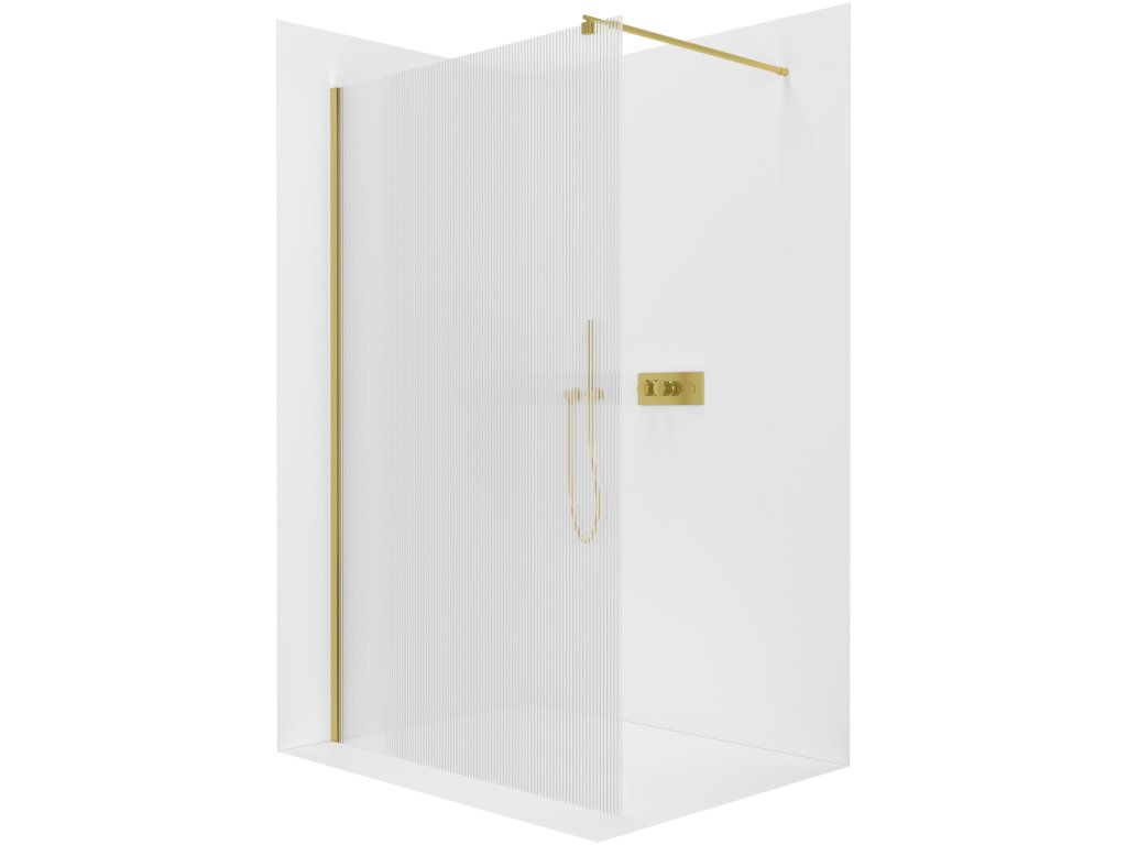 CERANO - Sprchová zástěna Walk-in Onyx Round L/P - 8 mm - kulatá vzpěra - zlatá kartáčovaná, rýhované sklo - 150x200 cm