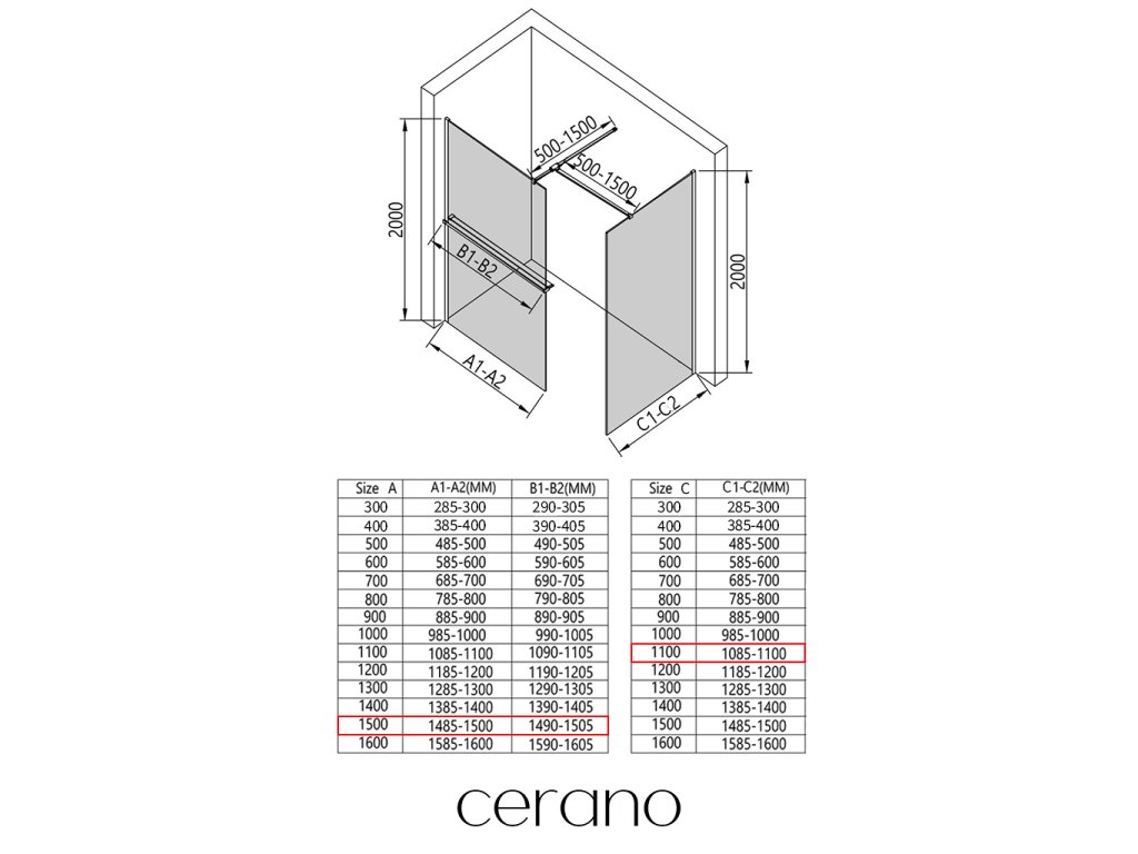 V rámci této série nabízíme širokou škálu rozměrů, abychom uspokojili různé potřeby našich zákazníků. Všechny sprchové kouty, dveře a zástěny značky Cerano jsou plně kompatibilní se sprchovými vaničkami Cerano ve stejných rozměrech, což zajišťuje bezproblémovou instalaci a dokonalé sladění. Sprchový kout lze navíc instalovat flexibilně – buď na odpovídající sprchovou vaničku, nebo přímo na podlahu podle vašich preferencí a možností koupelny.