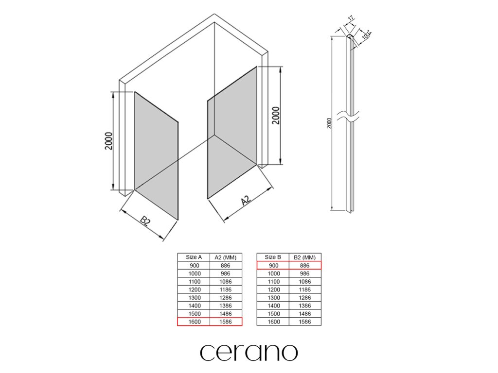 V rámci této série nabízíme širokou škálu rozměrů, abychom uspokojili různé potřeby našich zákazníků. Všechny sprchové kouty, dveře a zástěny značky Cerano jsou plně kompatibilní se sprchovými vaničkami Cerano ve stejných rozměrech, což zajišťuje bezproblémovou instalaci a dokonalé sladění. Sprchový kout lze navíc instalovat flexibilně – buď na odpovídající sprchovou vaničku, nebo přímo na podlahu podle vašich preferencí a možností koupelny.