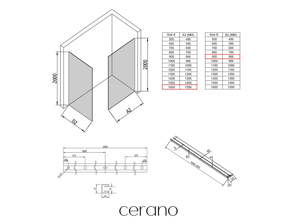 V rámci této série nabízíme širokou škálu rozměrů, abychom uspokojili různé potřeby našich zákazníků. Všechny sprchové kouty, dveře a zástěny značky Cerano jsou plně kompatibilní se sprchovými vaničkami Cerano ve stejných rozměrech, což zajišťuje bezproblémovou instalaci a dokonalé sladění. Sprchový kout lze navíc instalovat flexibilně – buď na odpovídající sprchovou vaničku, nebo přímo na podlahu podle vašich preferencí a možností koupelny.