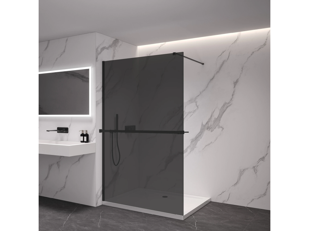 Sprchová zástěna je vyrobena z tvrzeného skla o tloušťce 10 mm, což zajišťuje nejen bezpečnost, ale také dlouhou životnost. Tvrzené sklo je méně náchylné k poškrábání a prasknutí, takže zůstane funkční po mnoho let. Skleněný panel v grafitové barvě vytváří efekt kouřového skla, což maximálně zvyšuje pocit soukromí při sprchování. Sklo disponuje povrchovou úpravou Easy Clean, která minimalizuje usazování vodního kamene a výrazně tak usnadňuje čištění. Před instalací doporučujeme aklimatizovat v domácích podmínkách po dobu 48 hodin. Především v zimních měsících.