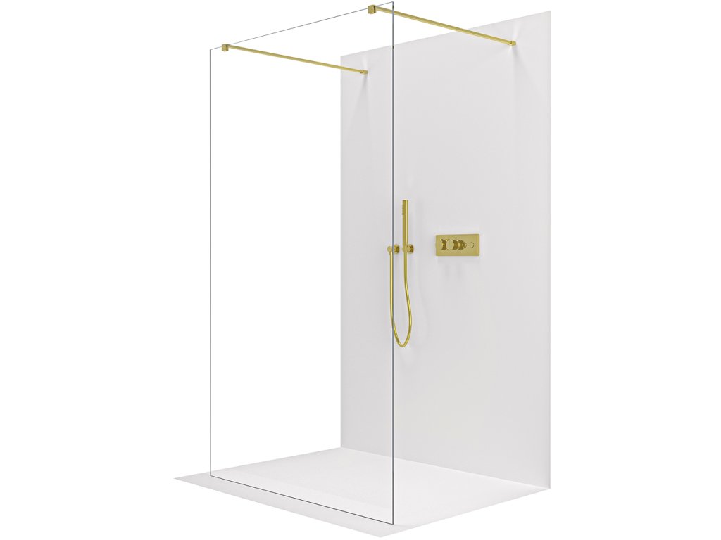 CERANO - Sprchová zástěna Walk-in Onyx Duo L/P - 8 mm - hranatá vzpěra - zlatá kartáčovaná, transparentní sklo - 160x200 cm
