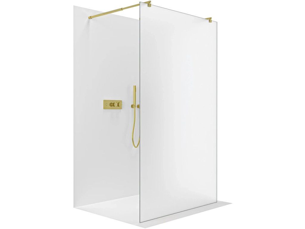 CERANO - Sprchová zástěna Walk-in Onyx Duo L/P - 8 mm - kulatá vzpěra - zlatá, mléčné sklo - 160x200 cm