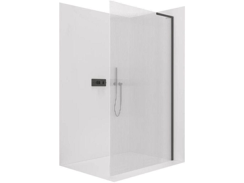CERANO - Sprchová zástěna Walk-in Onyx L-pravá vzpěra - 8 mm - černá matná, rýhované sklo - 160x200 cm