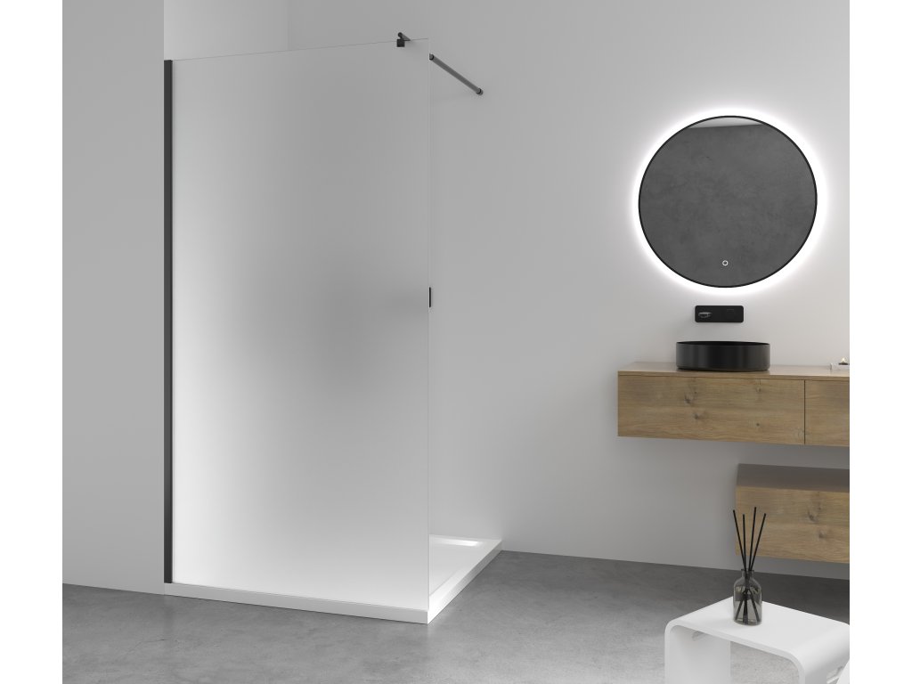 CERANO - Sprchová zástěna Walk-in Onyx Round L/P - 8 mm - kulatá vzpěra - černá matná, mléčné sklo - 160x200 cm